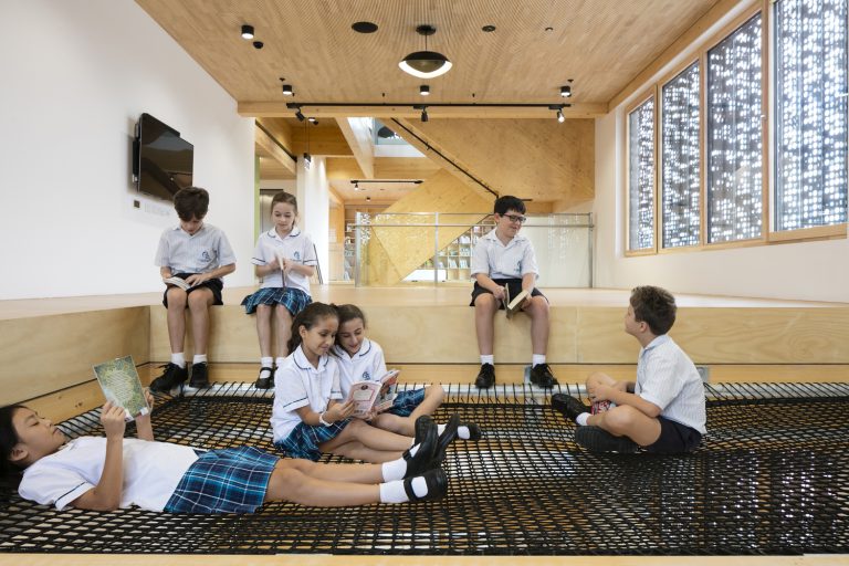 Aimed to address the school’s tight site where outdoor play areas are scarce, BVN were originally engaged to develop a masterplan for All Hallows Catholic School in Five Dock. The project evolved to include a new building, indoor and outdoor learning spaces, a library, and administration and staff spaces.