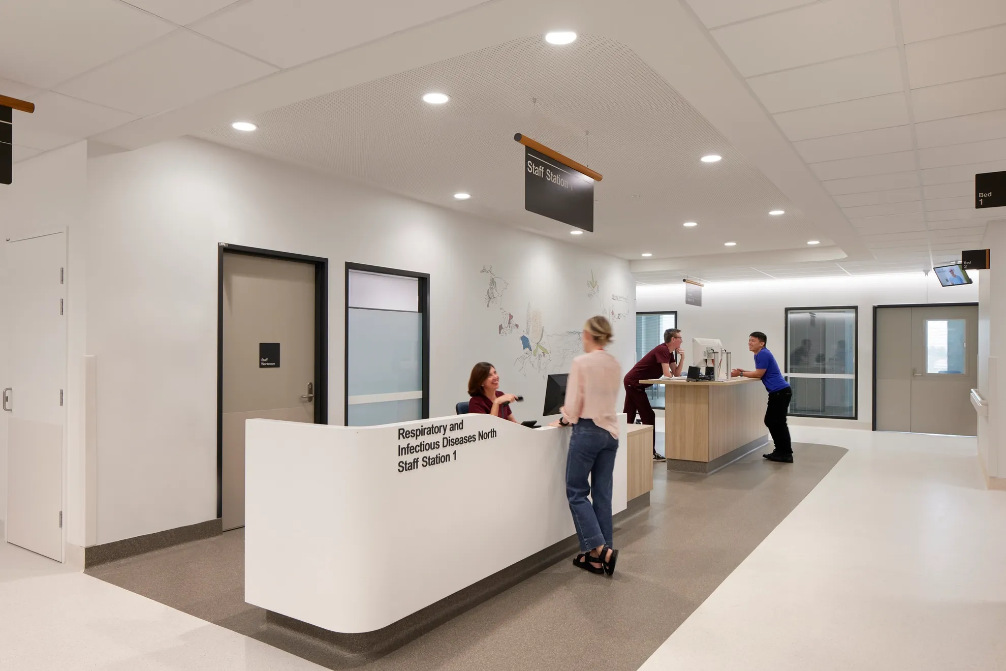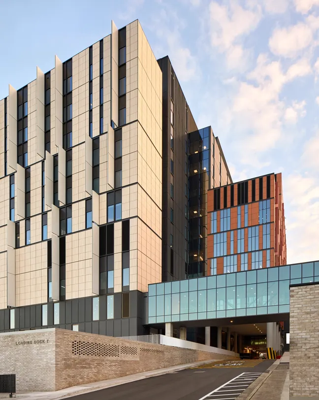 Situated on the traditional lands of the Bidjigal peoples, the ASB expands the capacity of Prince of Wales Hospital (PoWH) with additional inpatient beds, digital operating theatres, an Emergency Department, Intensive Care Unit, and helipad. This facility simultaneously catalyses future expansion to integrate PoWH with the University of NSW, Sydney, to become a world-class health science hub.