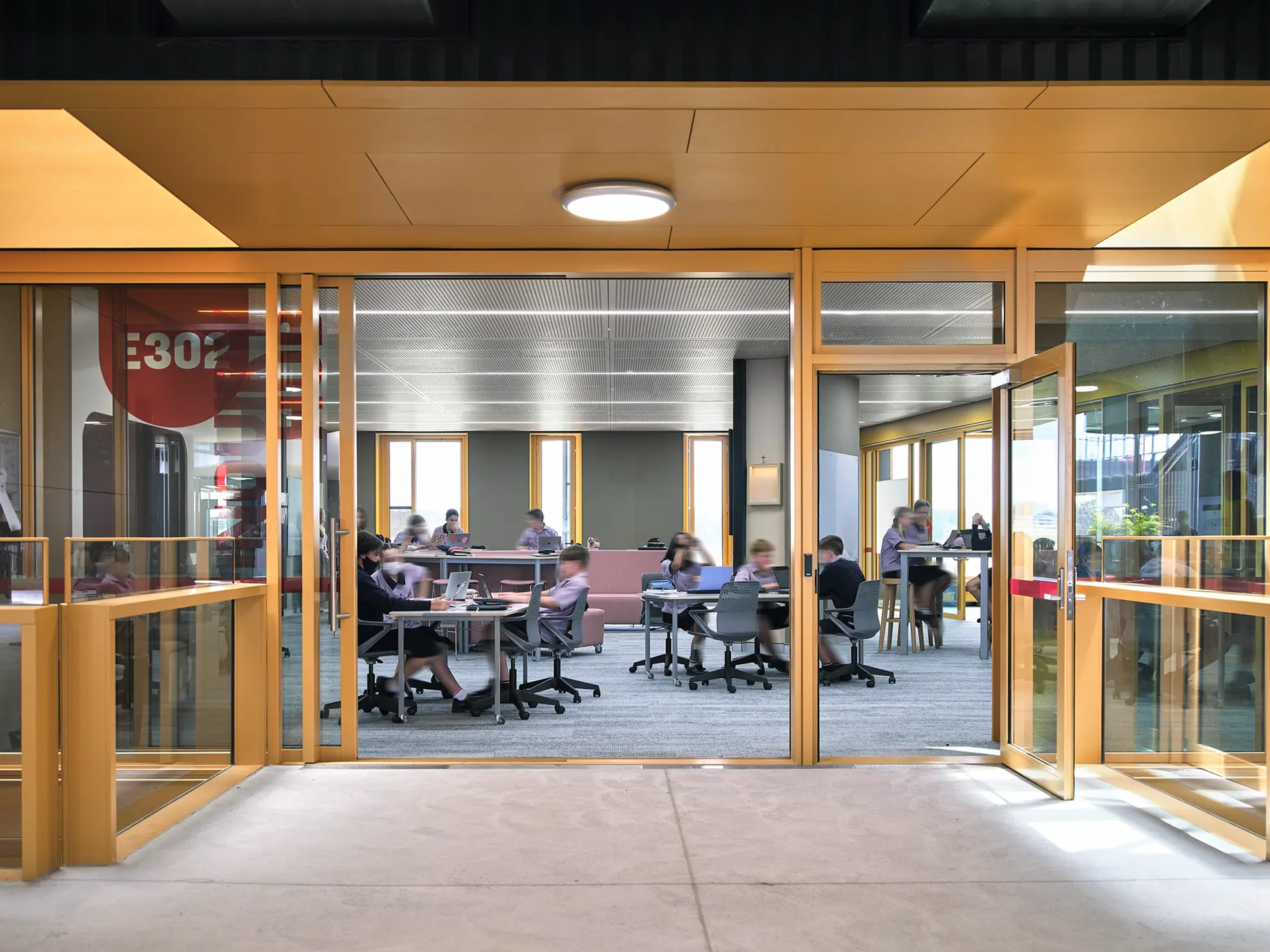 Yellow entry portals frame each Inquiry Hub providing connectivity to the open decks and outdoor learning spaces whilst also facilitating cross ventilation.