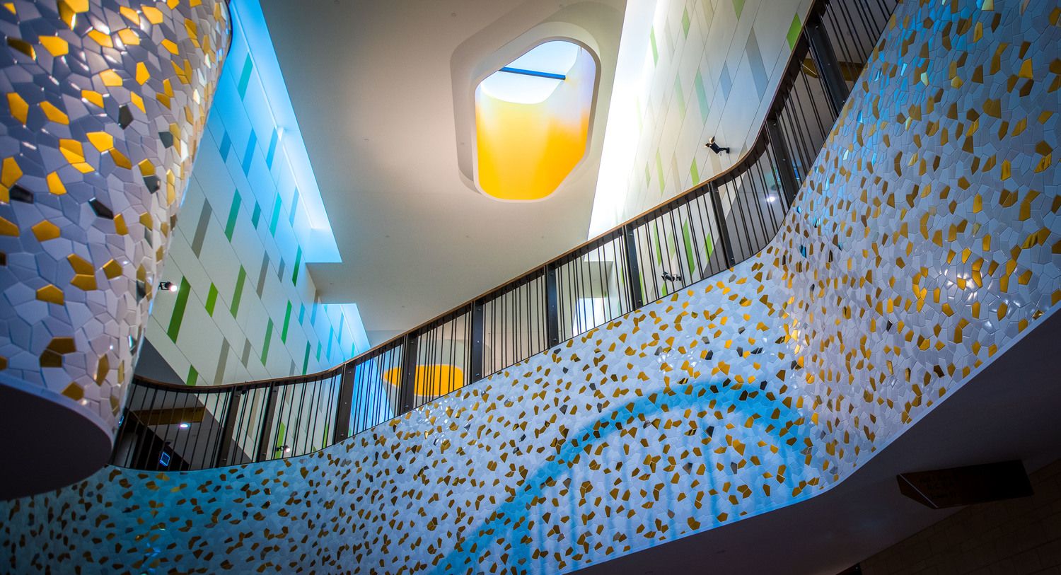 Embodying the excitement that is building for the Games, the Carrara centre features a sub-tropical character with bold and vibrant colours, shimmering surfaces and a visually rich interior that will thrill visitors and players alike.