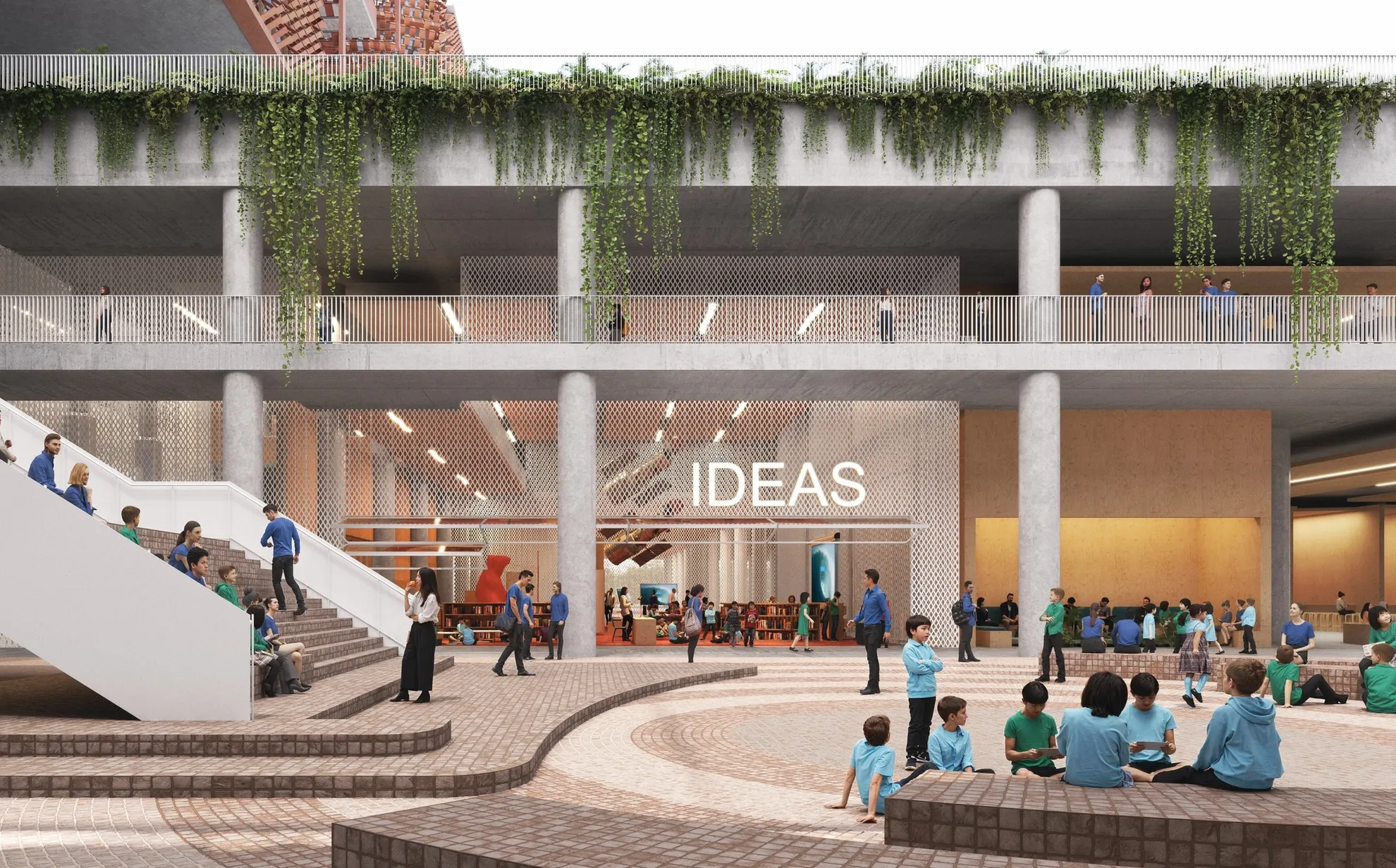 Sustainability informs the design through a wide range of strategies that will be made visible to students in the everyday experience of the school, making buildings and campus a teacher. Biophilic and passive design Learning areas harness natural light and ventilation Hybrid timber structures