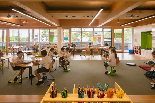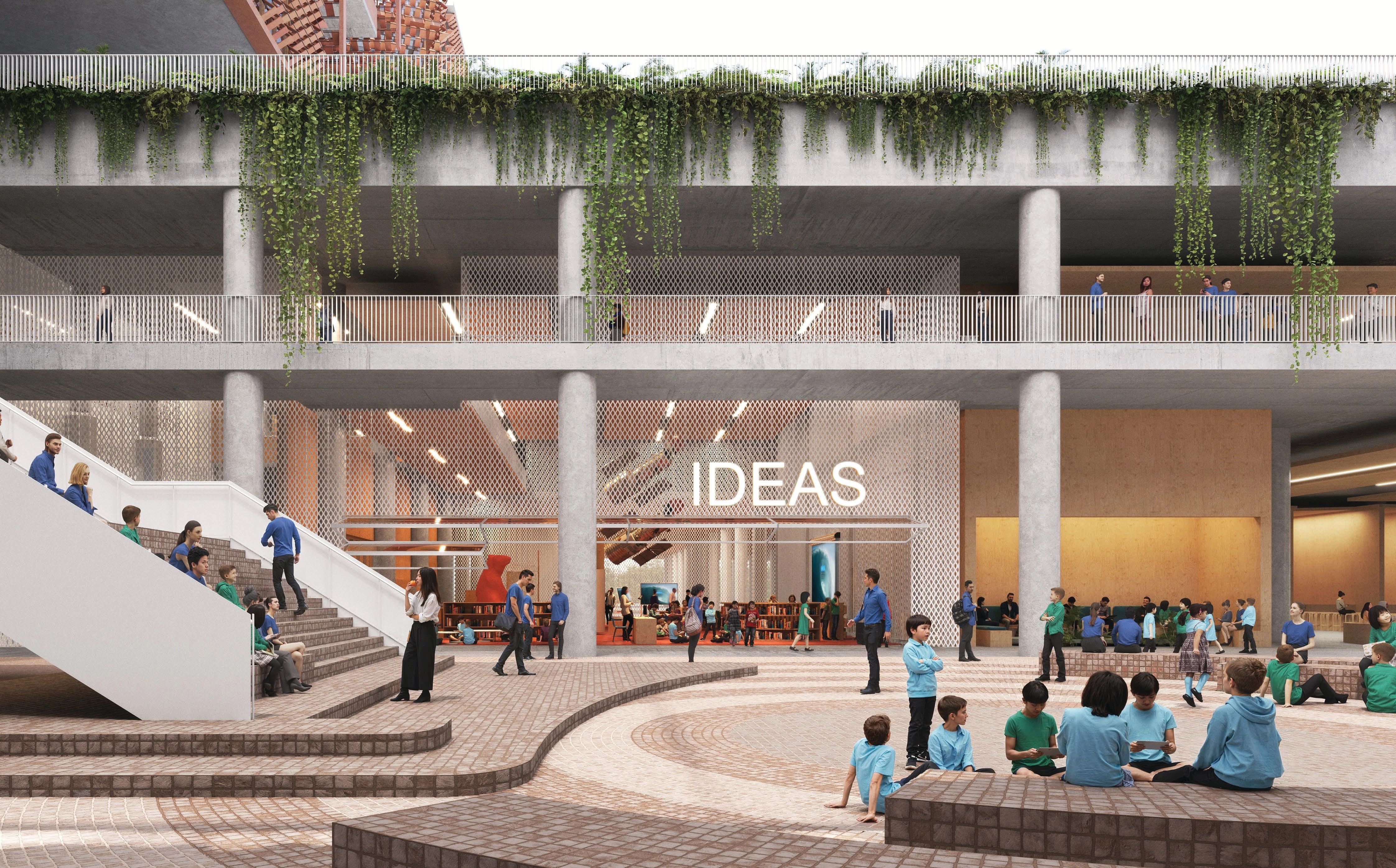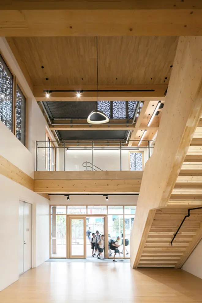 Sustainability informs the design through a wide range of strategies that will be made visible to students in the everyday experience of the school, making buildings and campus a teacher. Biophilic and passive design Learning areas harness natural light and ventilation Hybrid timber structures