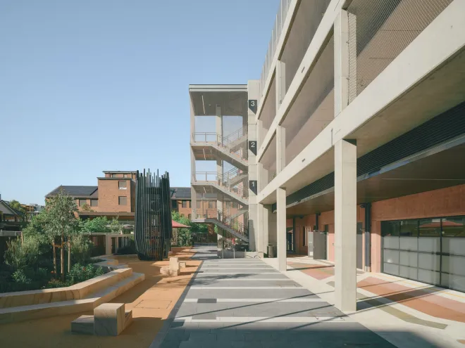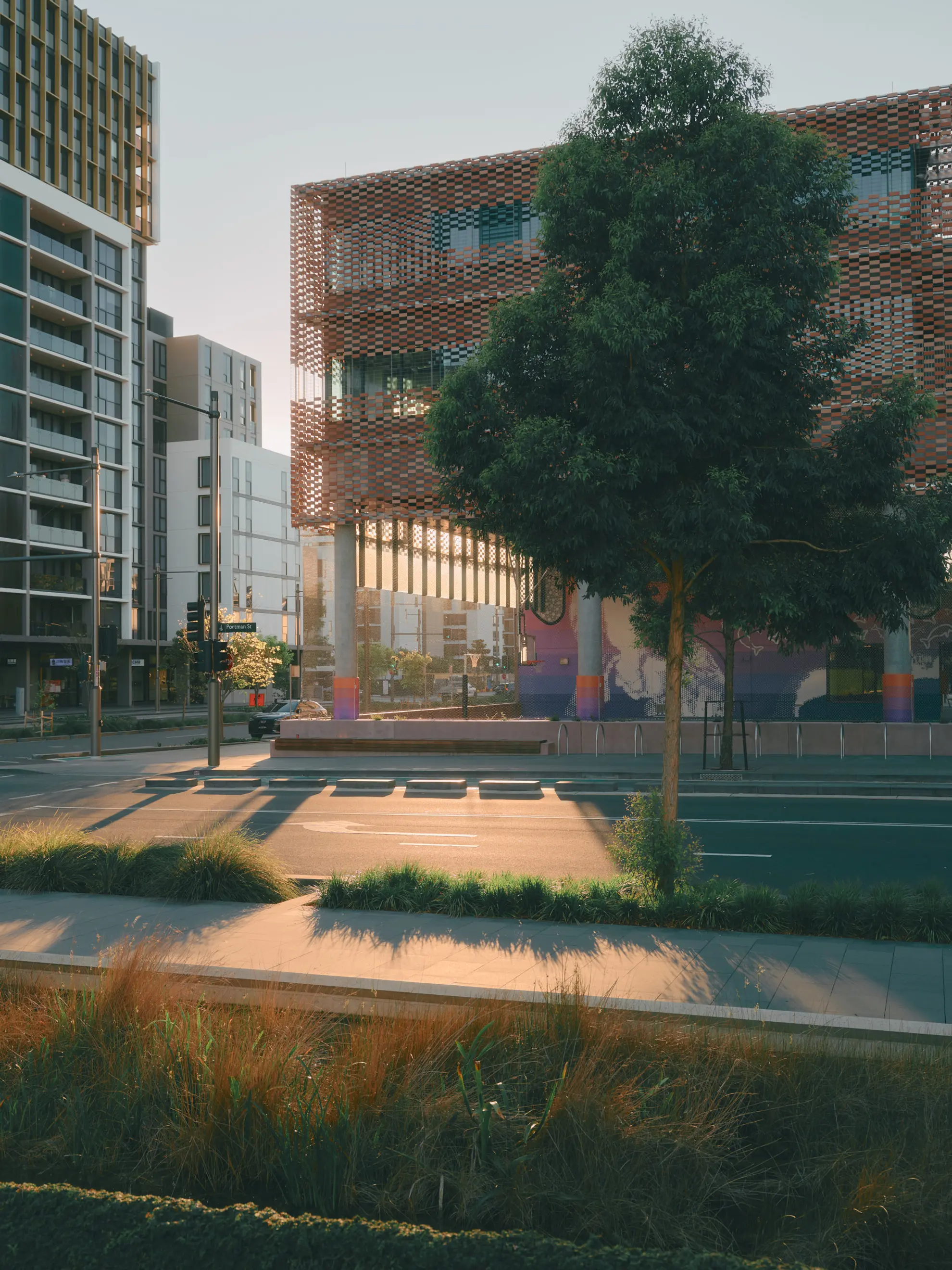 Designed to feel both safe and playful, the school welcomes children and families while supporting broader community functions and gatherings with active street frontages that energise the precinct. Layered with artwork and landscape and enriched by contemporary learning environments, the landmark school and community facility ensures children and all-ages can safely access spaces to play, learn, gather and grow.