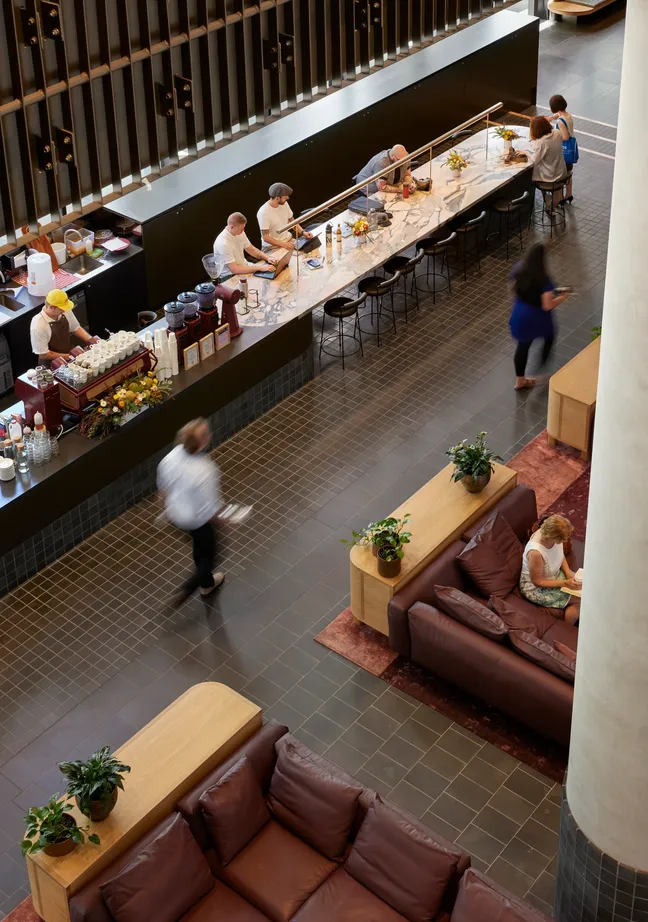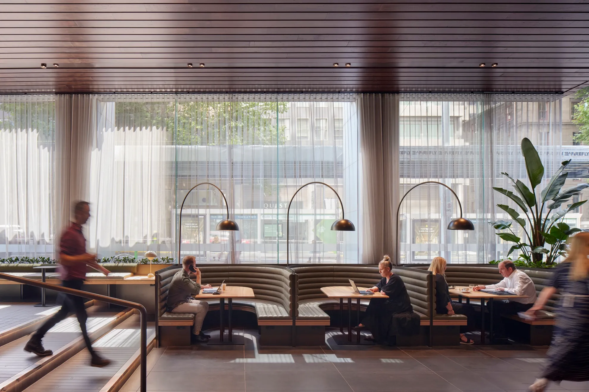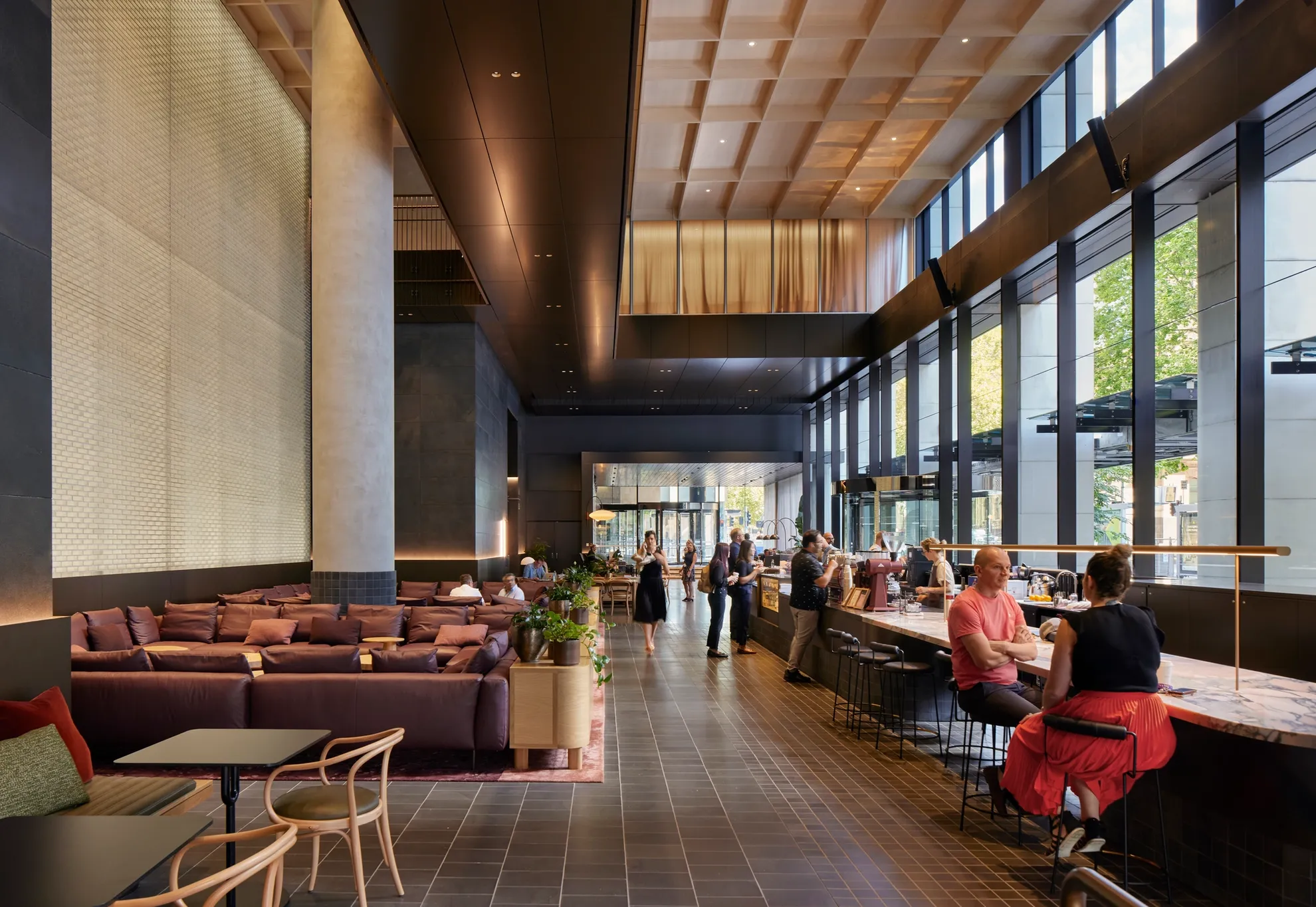 The public café which previously blocked one end of the lobby was migrated to the middle. A cross-lobby link was created, connecting Bourke Street and Little Bourke Street, thereby tapping into additional foot traffic.