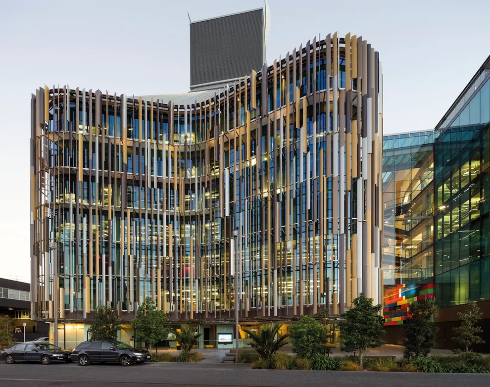 The buildings rooftop funnel serves a dual purpose - facilitating natural ventilation whilst referencing Auckland’s volcanic landscape.