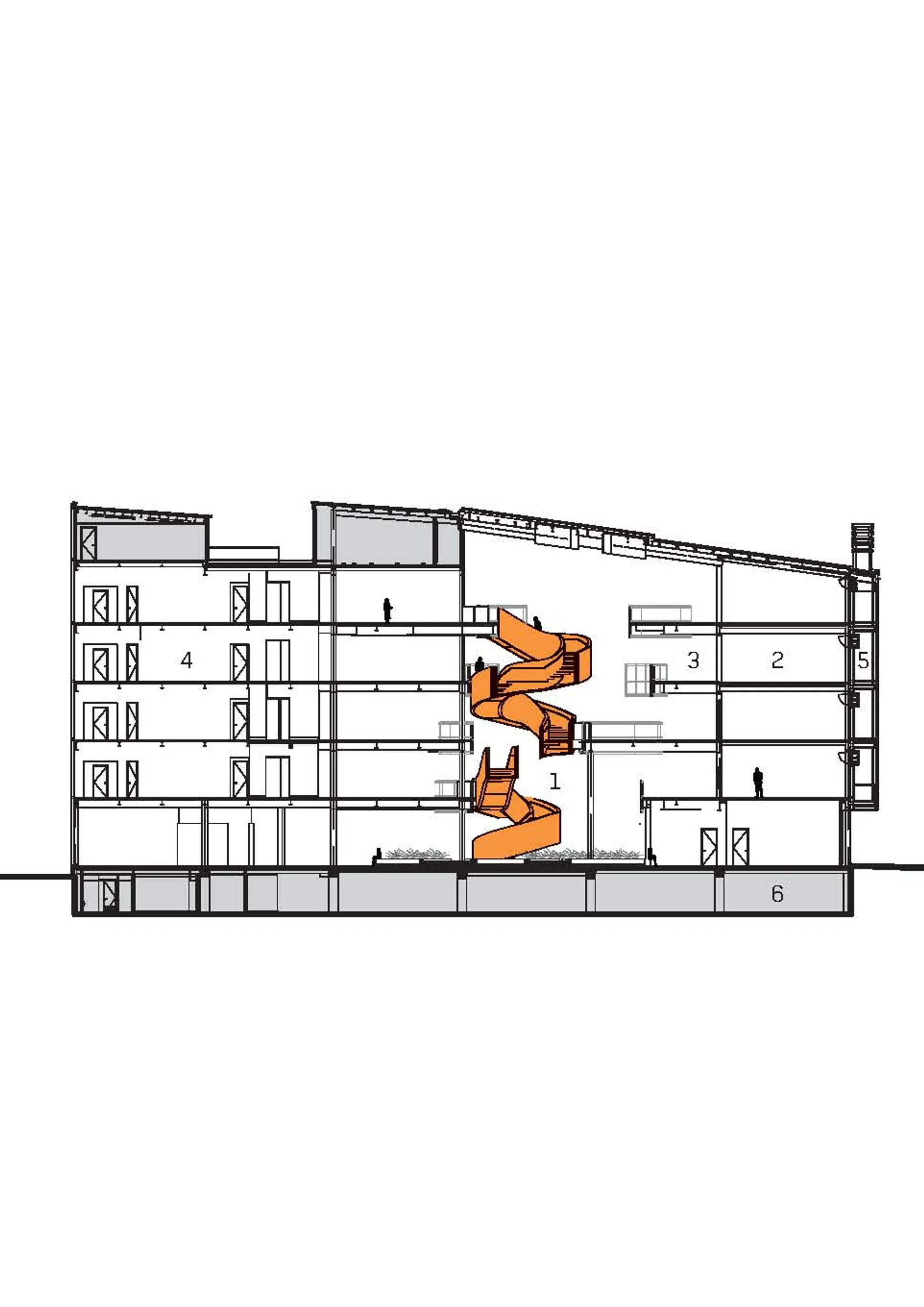 The stair with its fluid and organic shape becomes a symbol of a new generation, reinforcing the idea of the antithesis of “office building” in that its’ genesis is to be a 'place' for flexible, collaborative and community engaged work.