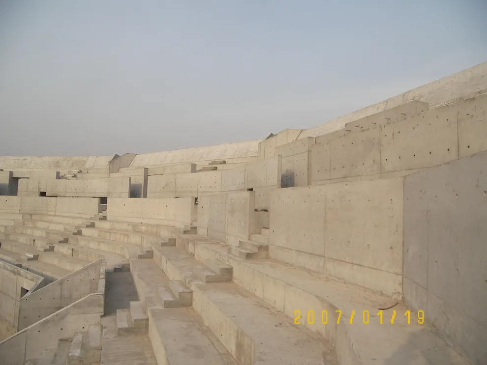The edges of the elevated platforms are defined by deep horizontal concrete bands