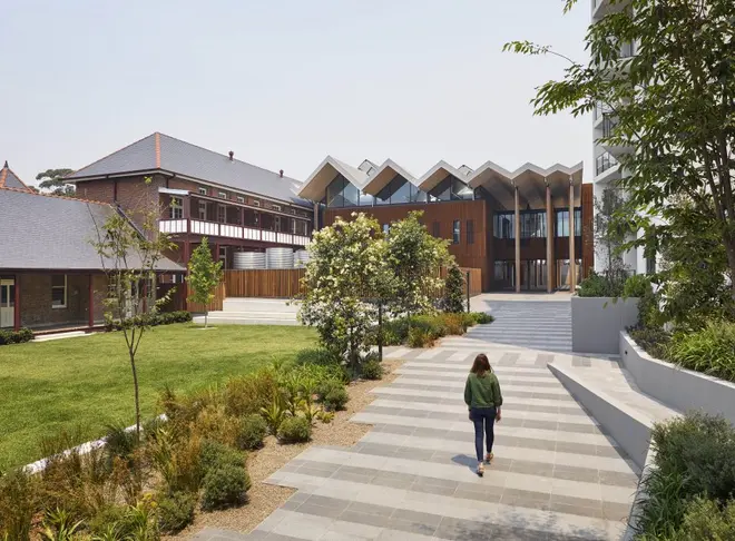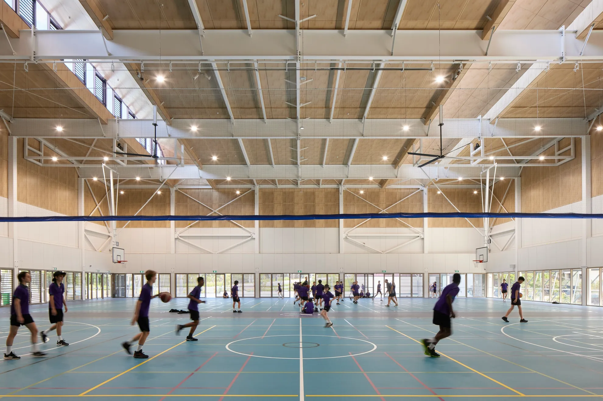 Sustainability permeates the design and educational philosophy of the school. Solar power, water harvesting, natural ventilation and low energy systems reduce impact. Active transport facilities and connections to public transport provide the platform for an educational focus on a “sustainable world” through recycling facilities and systems throughout the school.