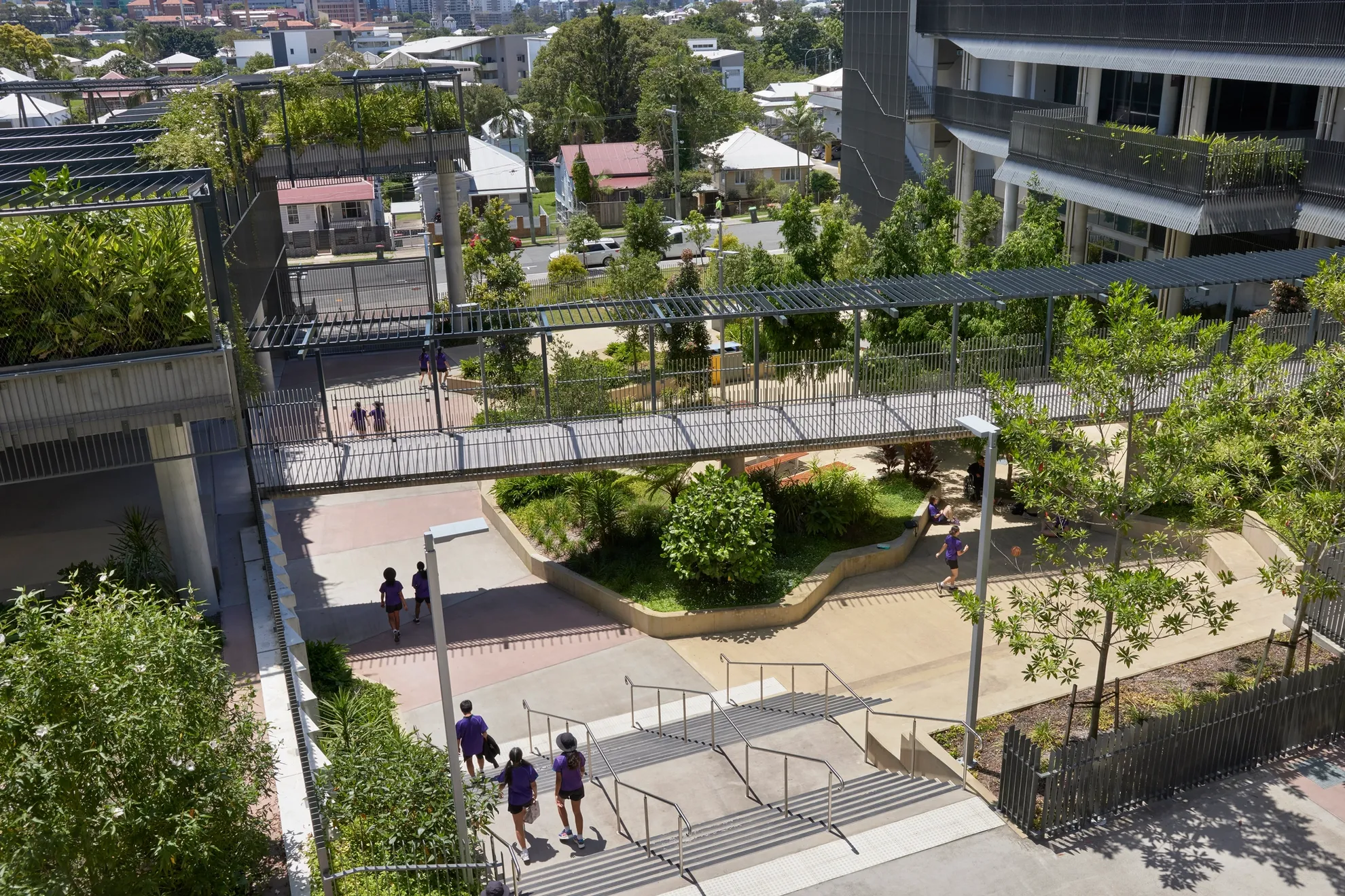 From its elevated position overlooking Brisbane city, BSSSC exudes energy and aspiration. This new inner-city school highlights just how much education has evolved. Everything about this campus speaks to a focus on excellence - a progressive environment that supports collaboration and a community of learning.