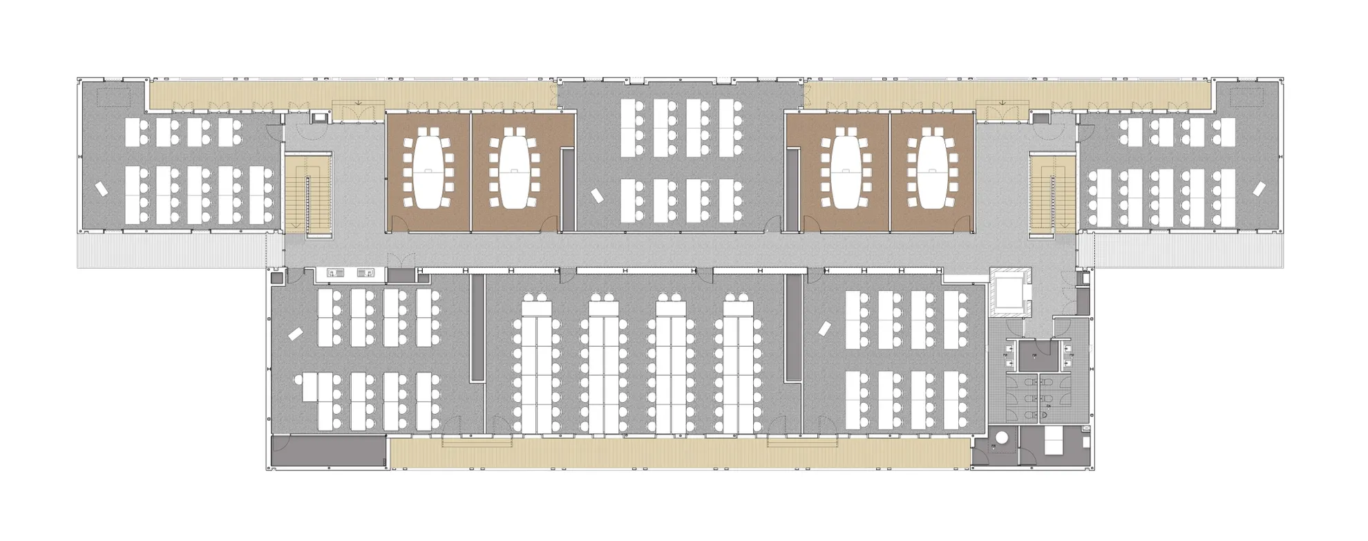 To produce contemporary spaces within existing architecture requires an innovative approach. The large function space was completely redesigned in order to obtain maximum flexibility. A massive truss on the upper level was suspended rather than supported by columns below. This innovative approach to construction provided modernised facilities and infrastructure that allow for the effective delivery of military training within a constrained footprint.