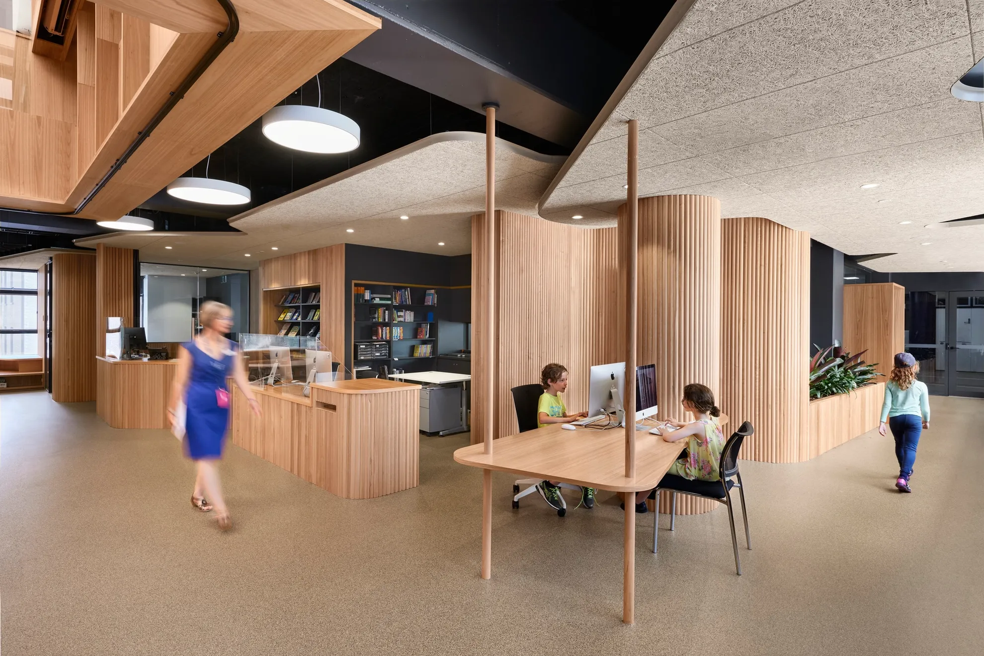 Our goal was to design calming spaces where teachers and students could learn and study while sparking their imaginations and creativity.