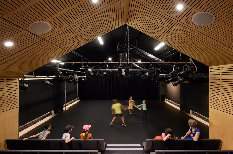 The Centre for the Dramatic Arts comprised the refurbishment of two levels of an existing warehouse. The space has been transformed from generic classrooms into a vibrant hub for IGS’s dramatic arts program.