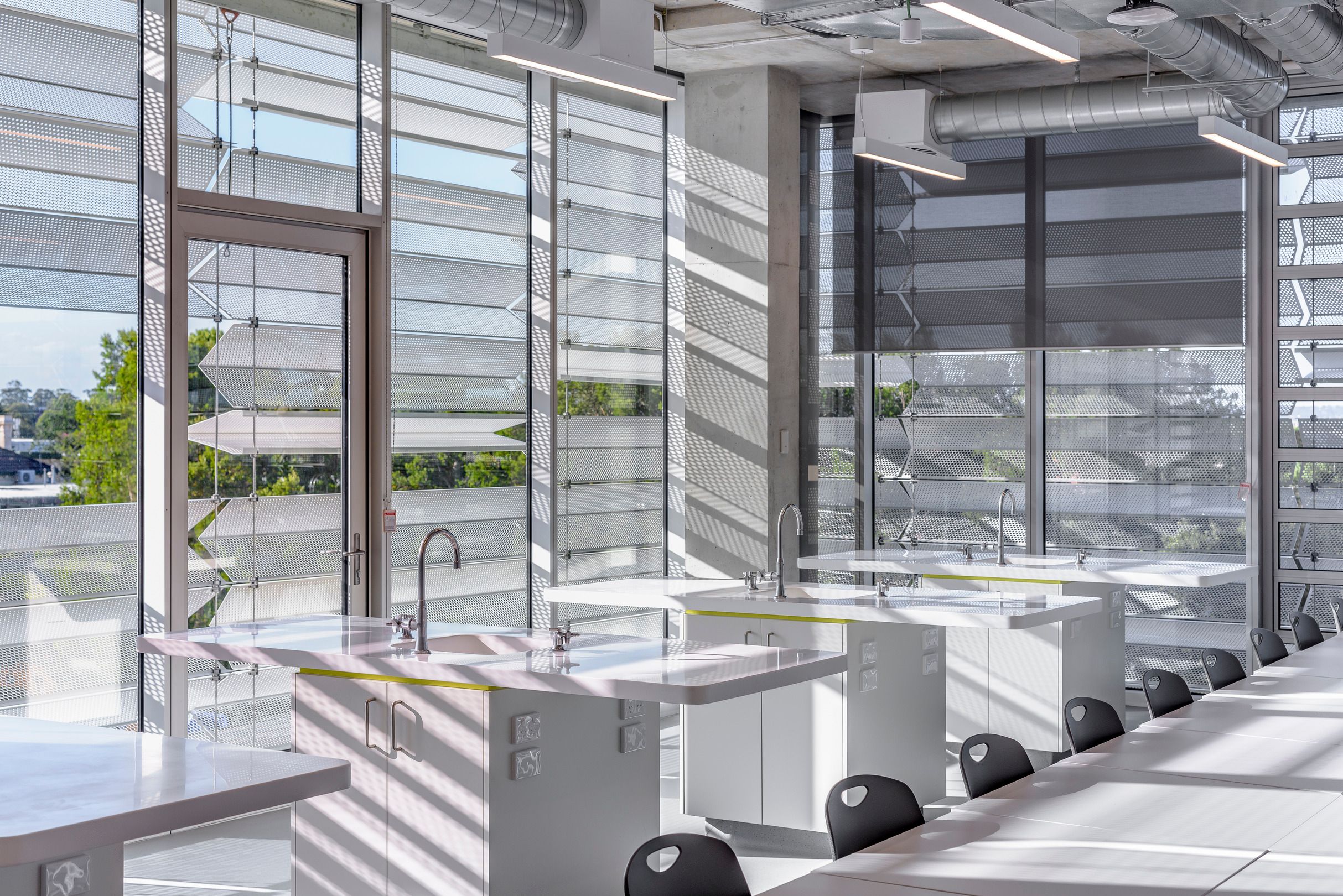 The senior centre, a new four storey building is designed much like an office building, allowing the floor plate to be easily reconfigured, and enabling the building to respond to developing teaching and learning models from the traditional to the future focused.
