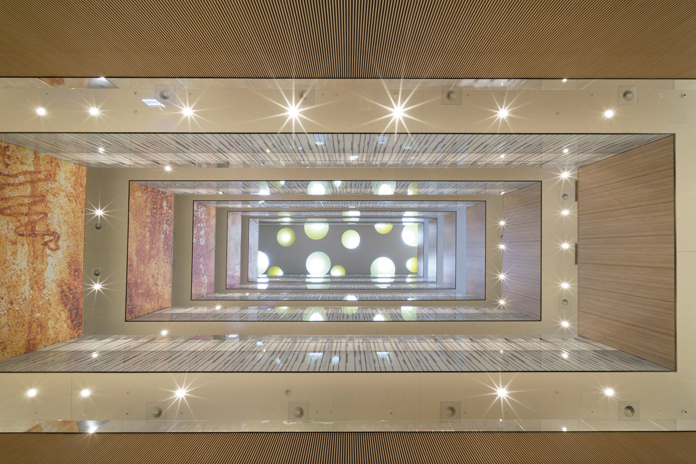 The atrium is home to two striking artworks, both created by local photographers, celebrating the unique environment of the beaches