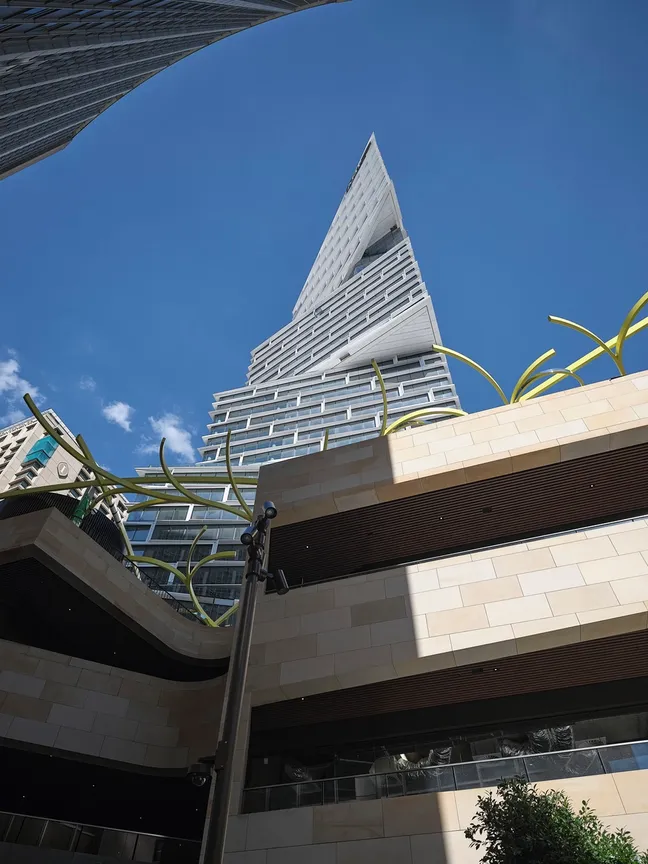 The podium comprises 30 premium shops, eateries and fitness spaces, plus the entry to the Office Lobby. It’s a vast and dynamic space complete with Tom Dixon-designed furniture and fixtures. Just outside, a striking sculpture accentuates a 4,000sqm leisure space that features event spaces and edible gardens.