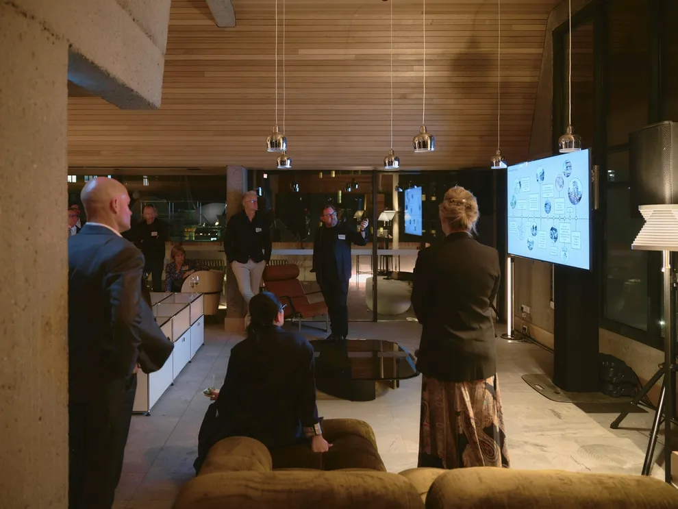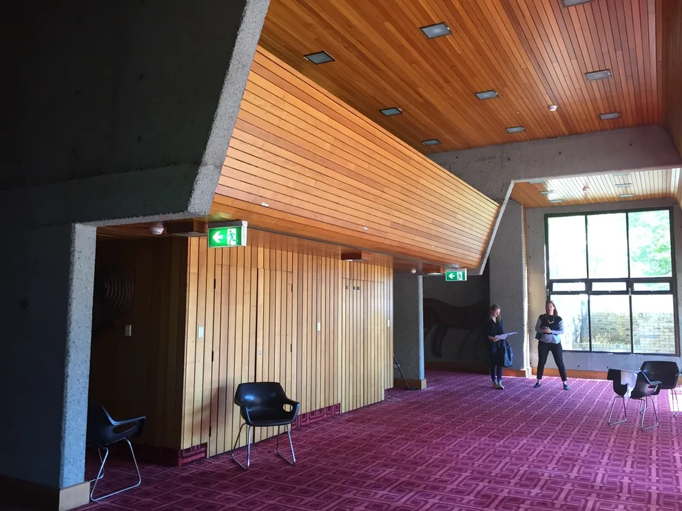The Phillip Room has been carefully restored as a ground floor communal area for residents. Its original timber beam ceiling and walls have been renovated and reinforced for a long future, and the timber bison artworks by architect Penny Rosier have been restored and rehung within the space.