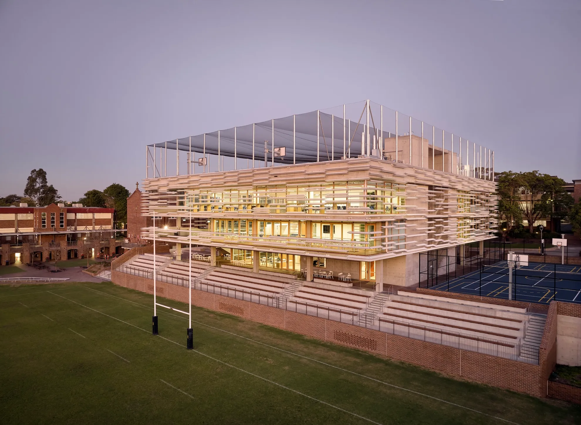While several tennis courts were demolished to make room for the new building, no recreational area was lost as a result. Two of the ground floor sports courts were reinstated, while a pair of floodlit tennis and basketball courts became the defining feature of the Scientia rooftop.