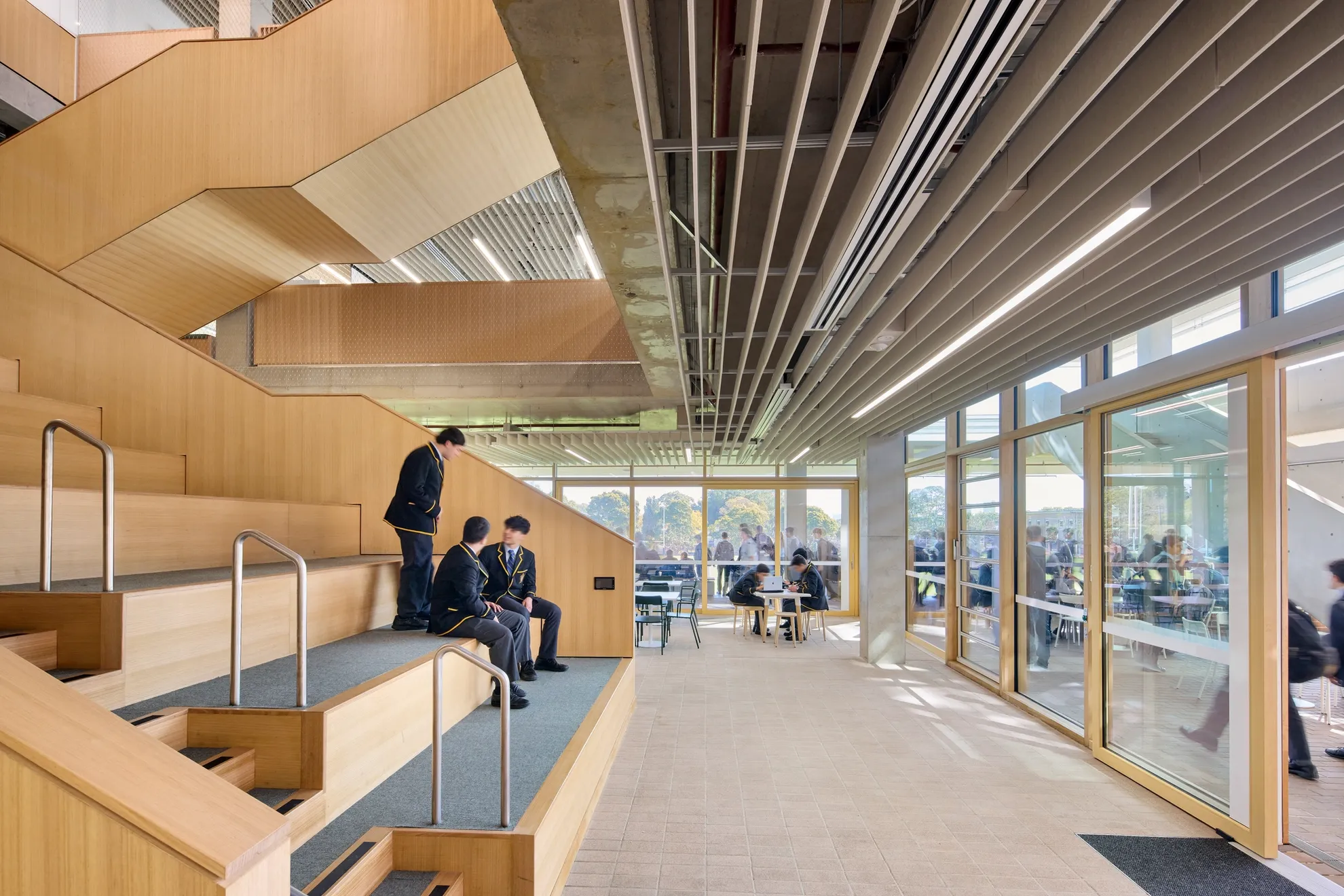 Taking full advantage of the site’s natural and physical features, the podium level features an undercover outdoor gathering space, a canteen and dining area and the building’s signature tiered grandstand, overlooking Breen Oval. These shared spaces make Scientia a natural focal point for the community, hosting social and extra-curricular activities, performances and events.