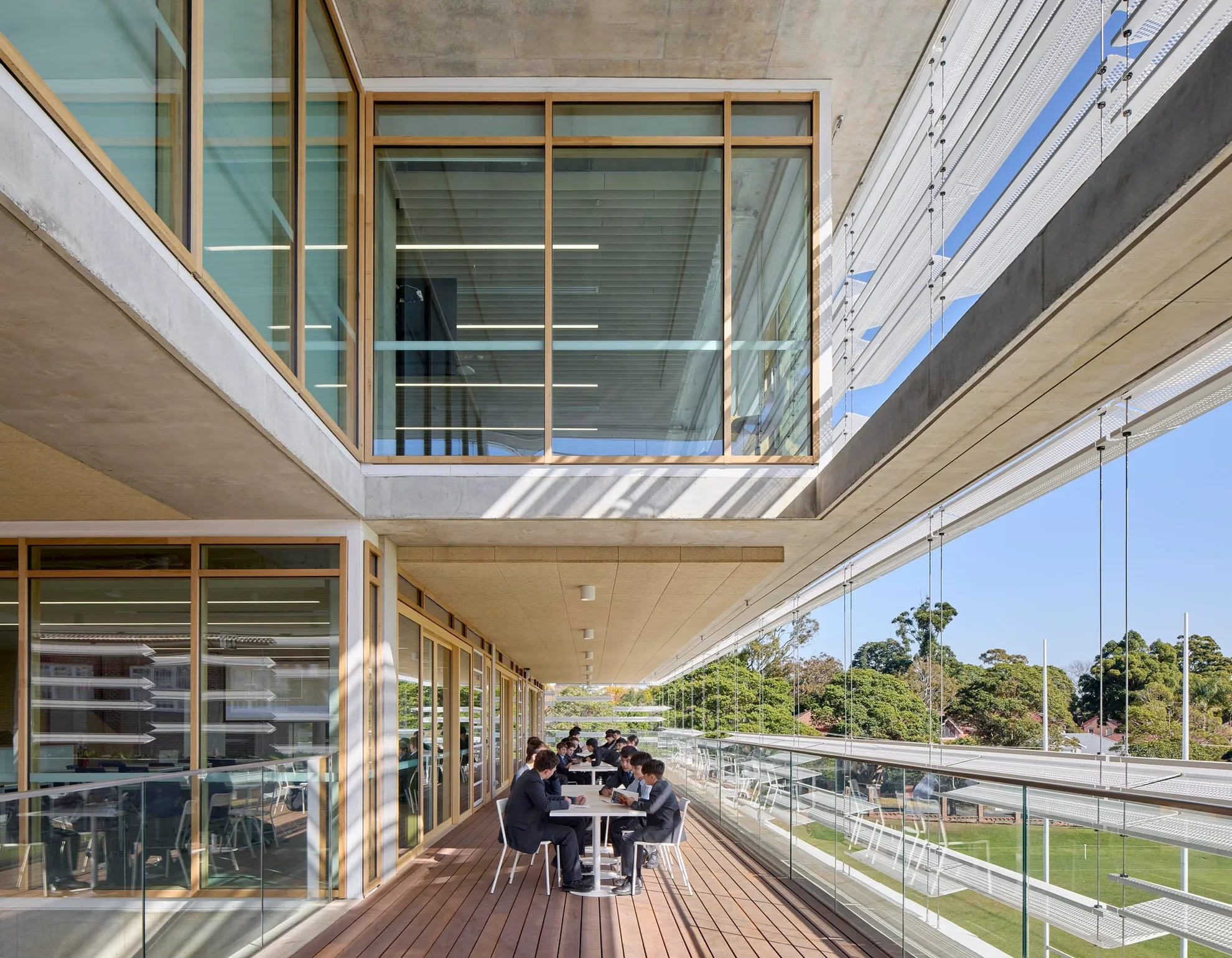 Many of the school’s older buildings lack the benefit of breezes, sunshine and visible greenery. Scientia’s facade optimises access to daylight, fresh air and views,