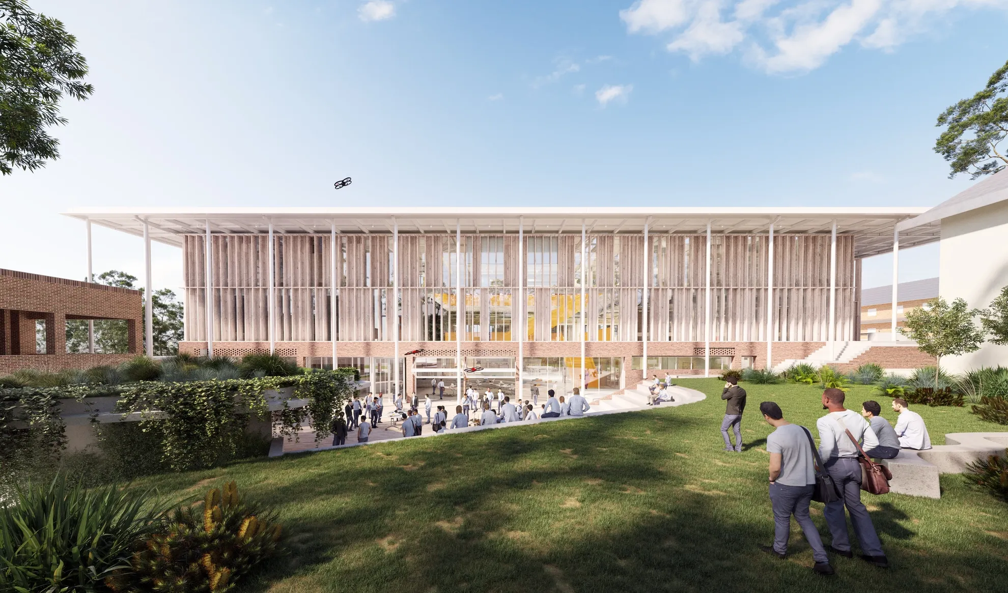 King's is known for its distinctive architectural vernacular – particularly its colonial style colonnades and courtyards. The STEAM building will reflect the contemporary values of the school while respecting the tradition, expression and scale of the existing buildings. It reinterprets the ‘courtyard typology’ with timber columns and a wide verandah spilling out to an expansive forecourt.