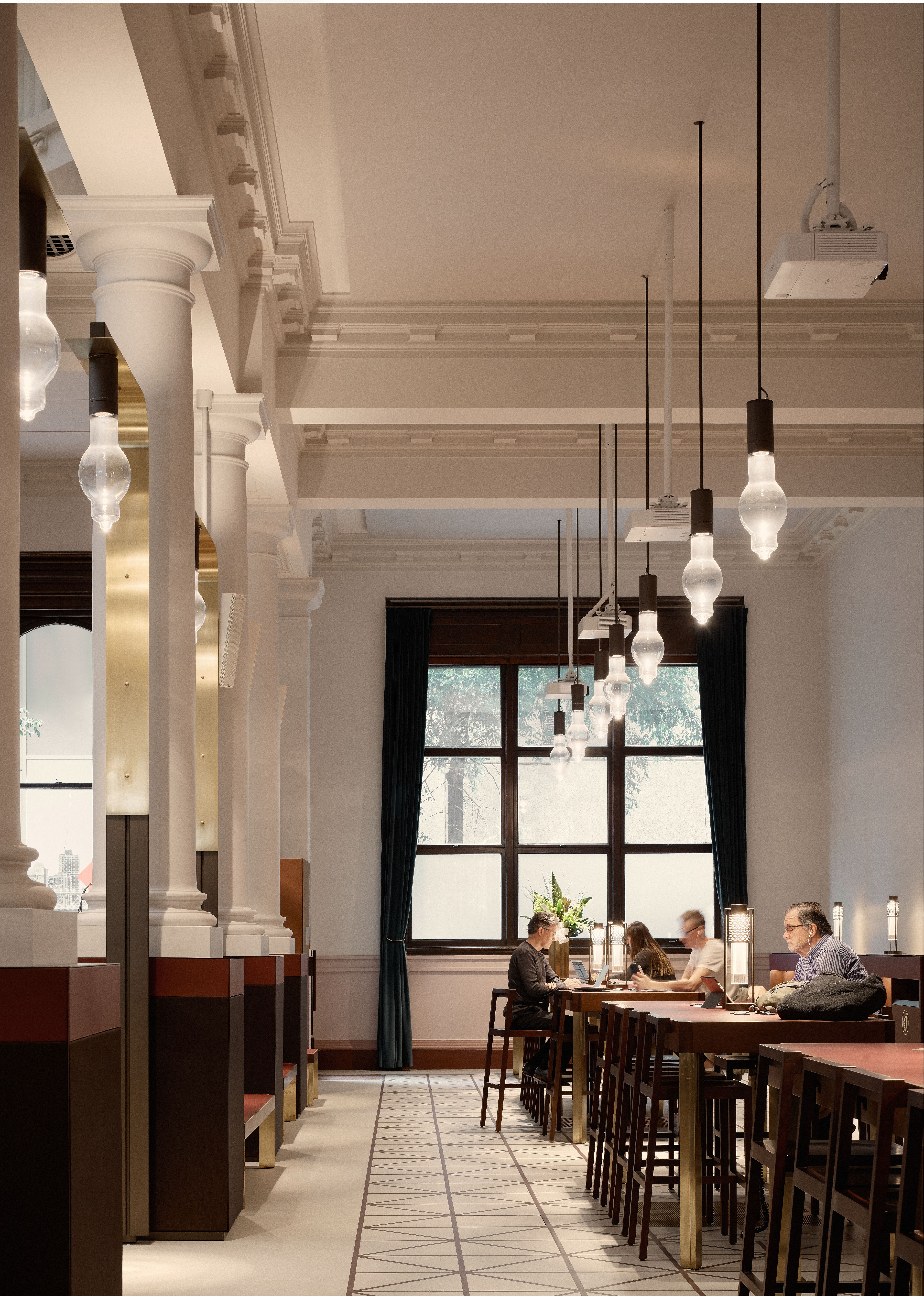 Upstairs, original rooms encircling the dome over two floors serve as creative suites to support group study, meetings and break-out rooms for postgraduate students within the schools of architecture and business.