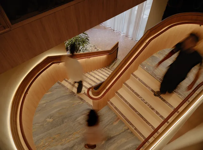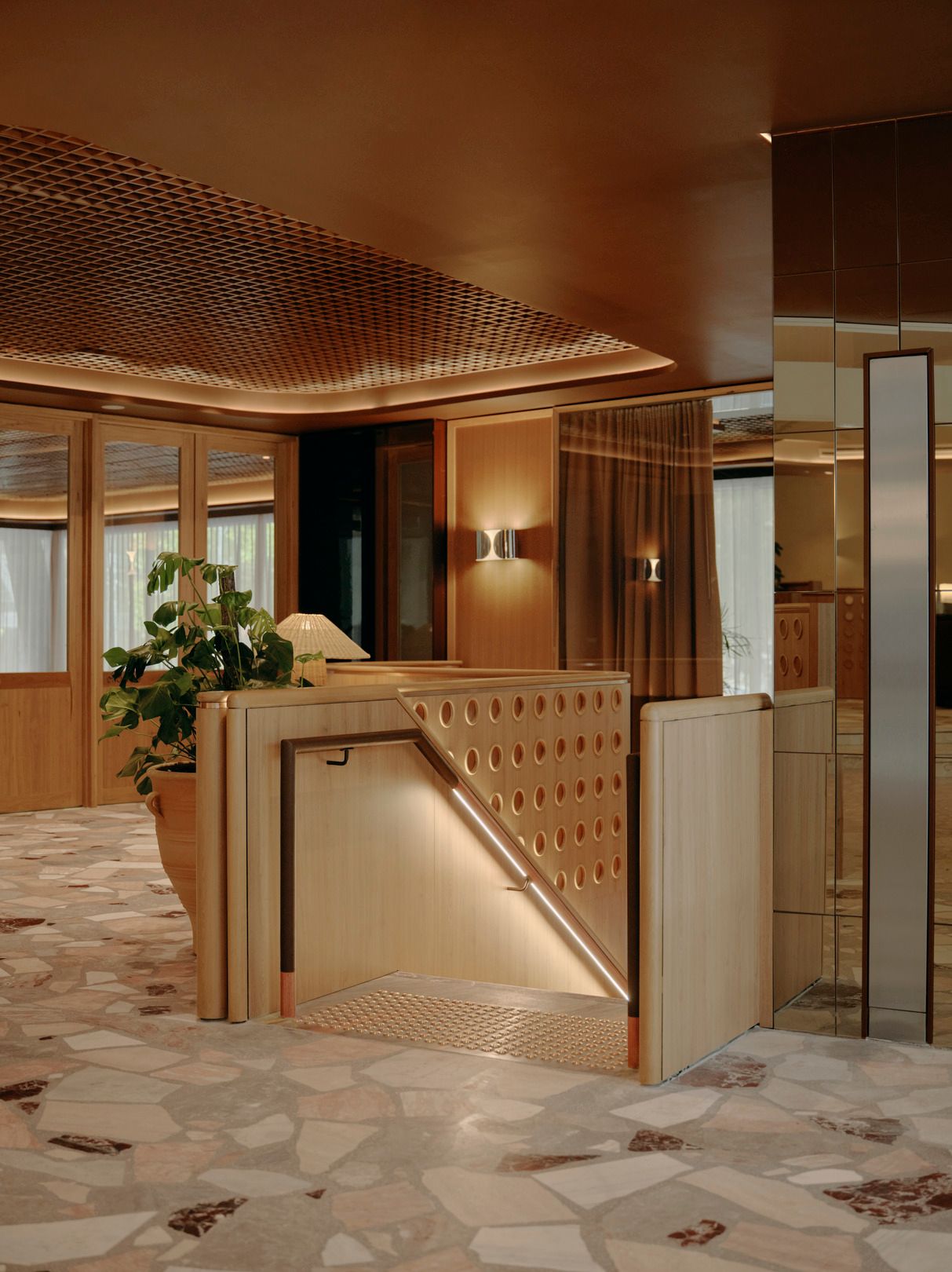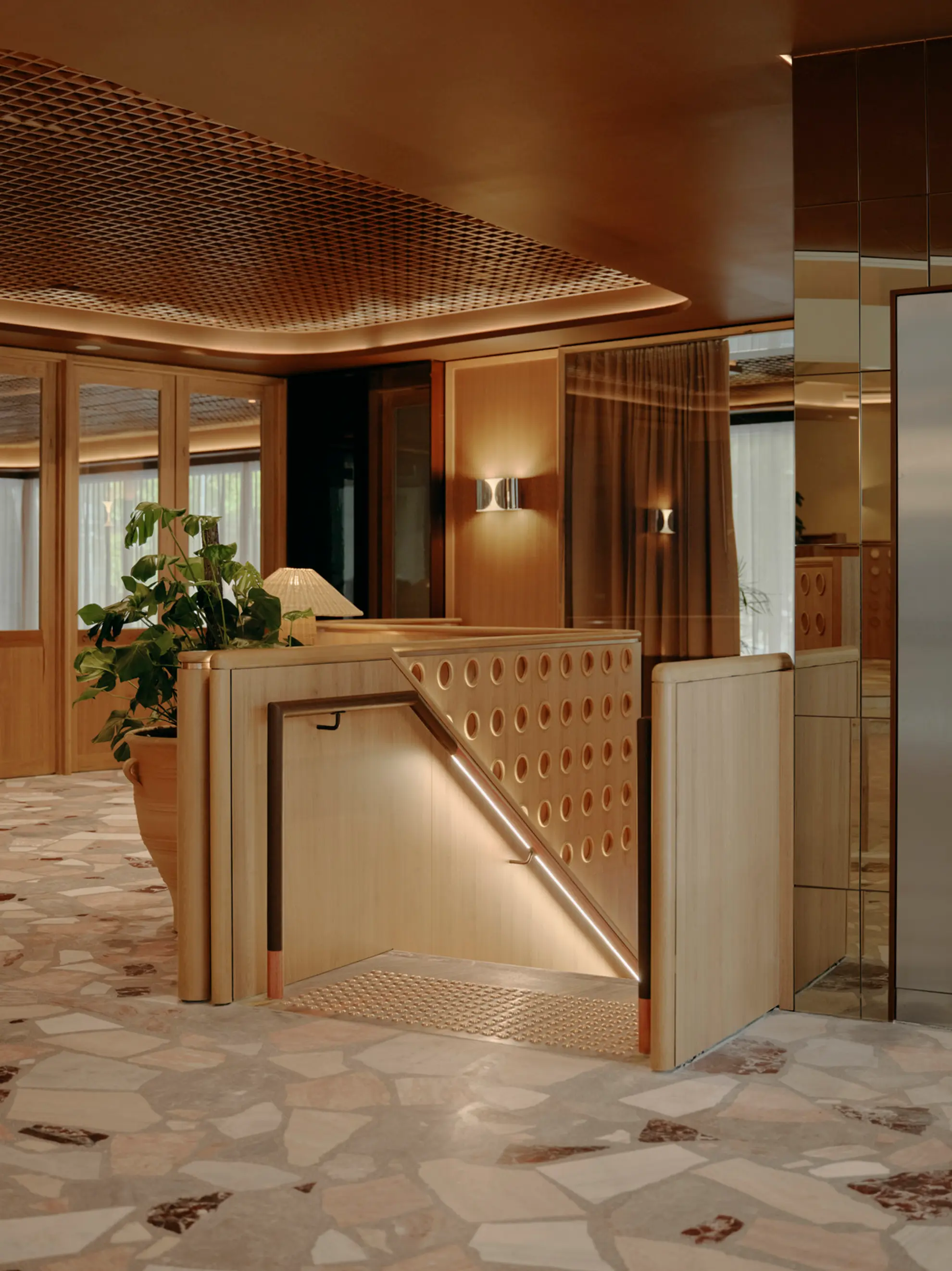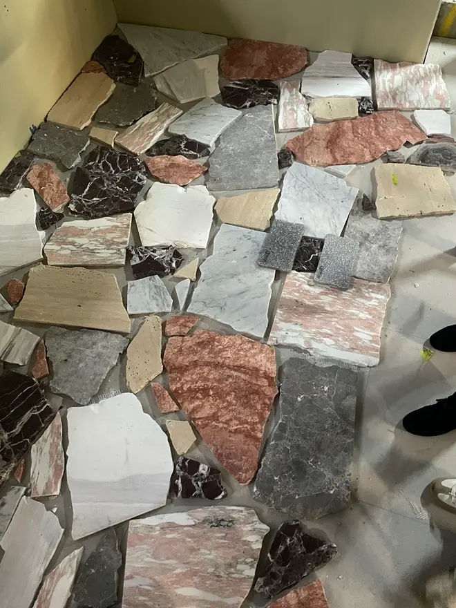 181 William 'The Meeting Place', demonstrates how materials typically considered waste can be repurposed into a refined and cohesive design. The crazy paving floor, made from on-site stone offcuts and surplus fragments from local suppliers, creates a richly textured surface that adds character and reflects a quiet commitment to sustainability.