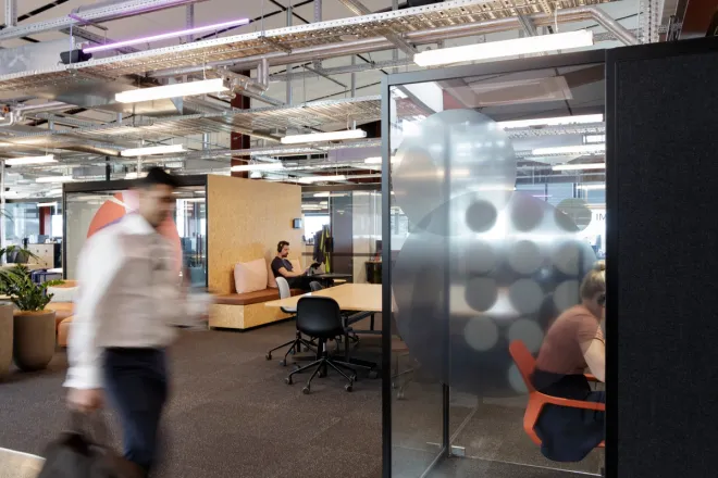 At Smales Farm B:Hive, the floors have been future-proofed through adaptable partitions, ensuring longevity and minimising unnecessary disposal.
