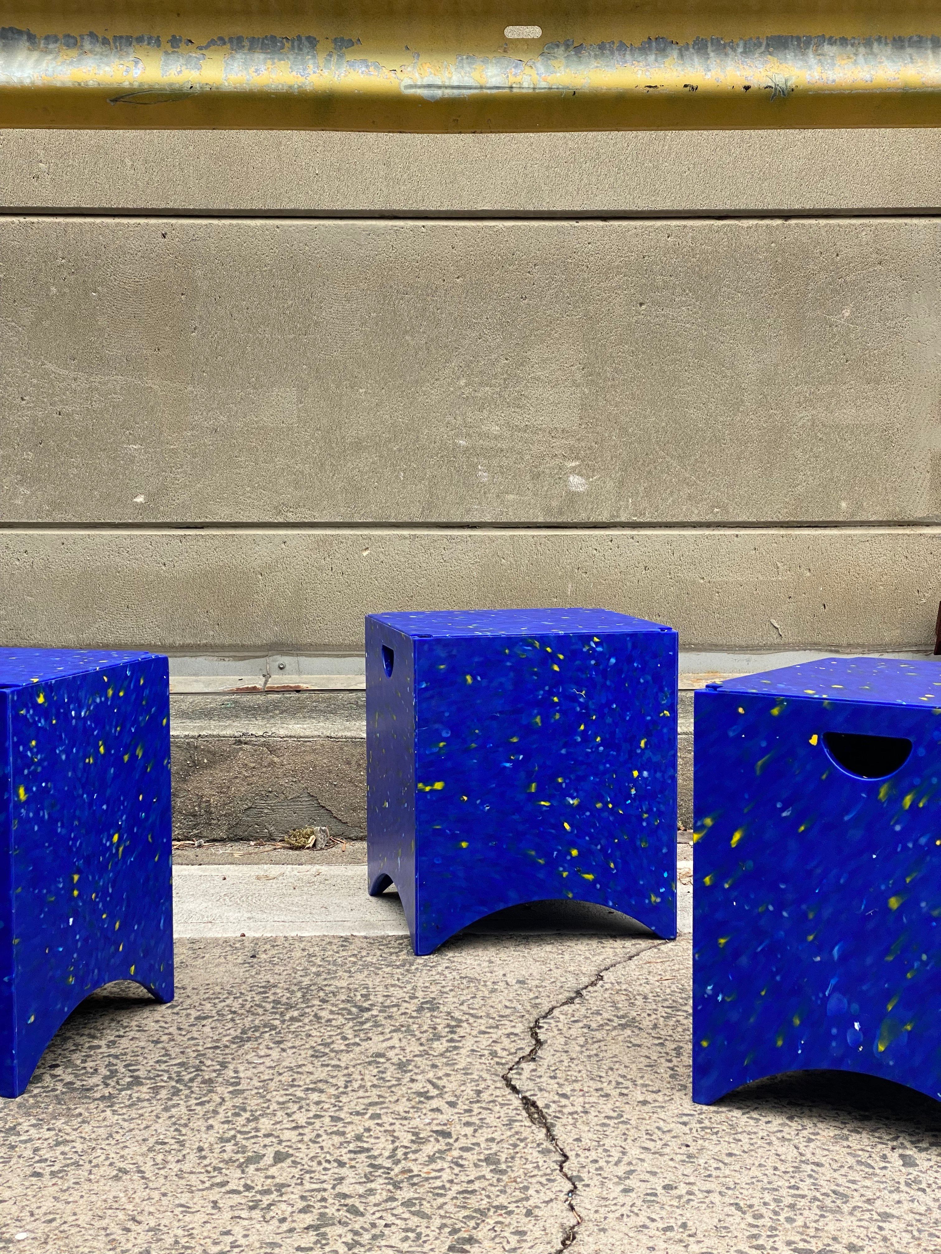 Each stool is made from approximately 20 crates (about 60 kg), with the recycled HDPE plastic washed, shredded, and pressed into robust slabs ready for manufacture. This collaboration turns waste into a practical, durable product – an elegant example of circular design in action.BVN in Collaboration with Re-Ply & Defy Design